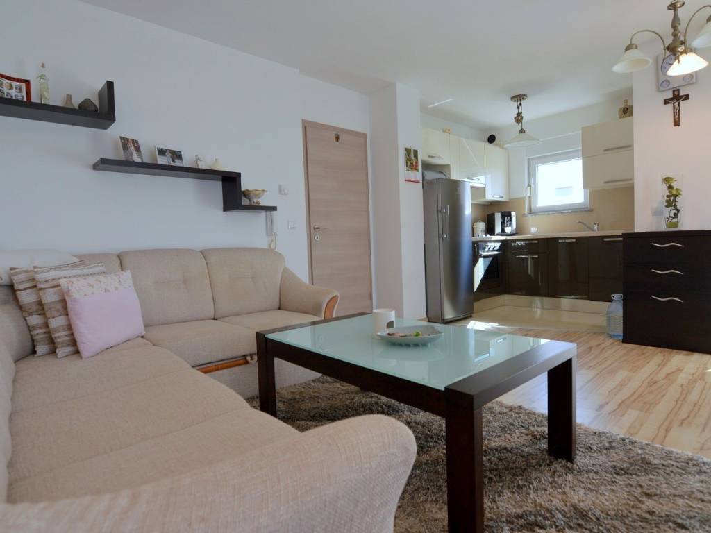 Stan se sastoji od predsoblja, kuhinje sa blagovaonom i dnevnog boravka sa izlazom na terasu, dva kupatila i dvije spavaće sobe .