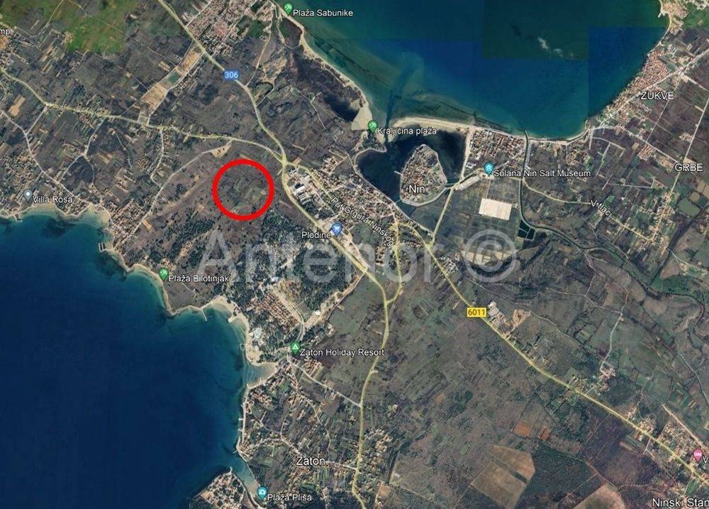 Zemljište je udaljeno od mora 1 km. Vlasništvo 1/1.