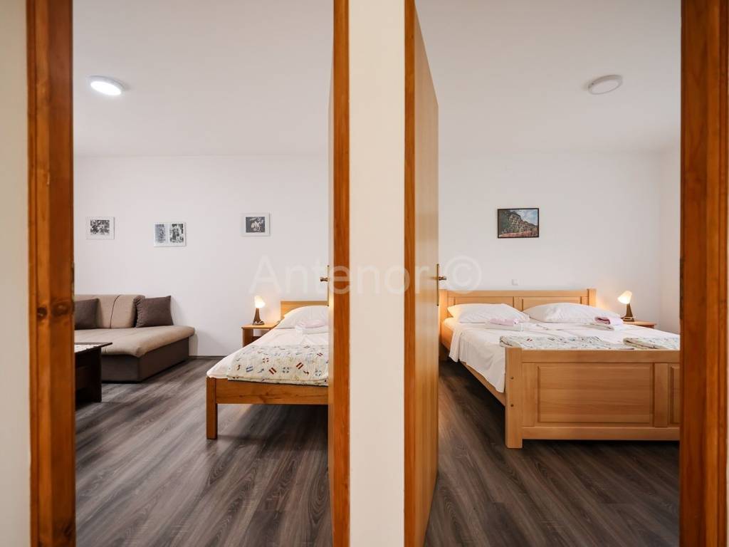 NIN - NINSKE VODICE - prodaje se dvojna kuća sa tri stambene jedinice. Kuća se sastoji od prizemlja, kata i potkrovlja. U prizemlju se nalazi dvosoban apartman. Vanjskim stubištem se dolazi na 1. kat gdje se također nalazi stan od dvije spavaće sobe, kupaonice, kuhinje, blagavaone i terase s pogledom na more. U potkrovlju se nalazi još jedan dvosoban stan. Dvorište kuće je uređeno sa vanjskim roštieljem, prostorom za druženje, parkirnim mjestima....