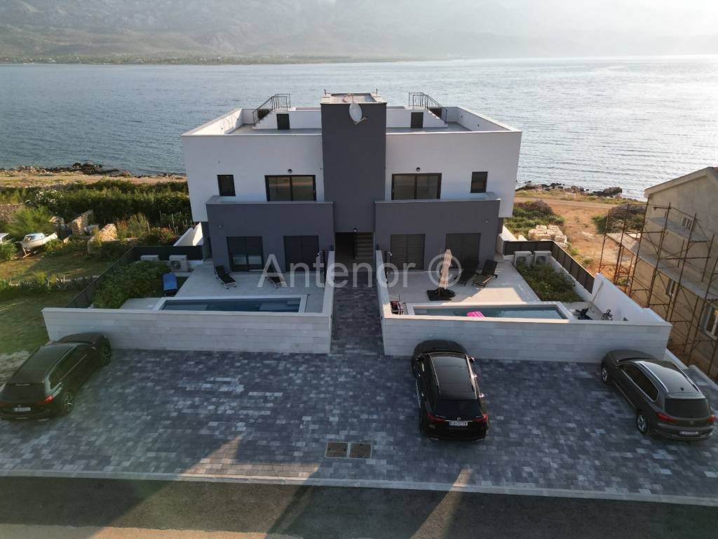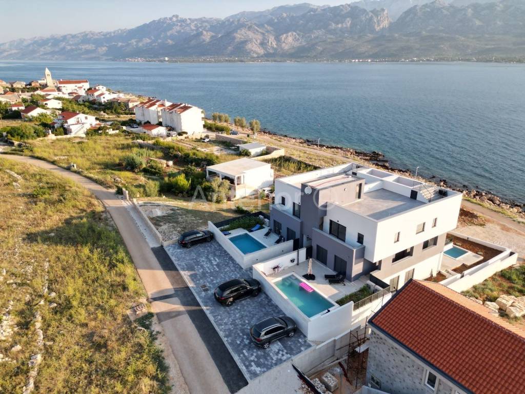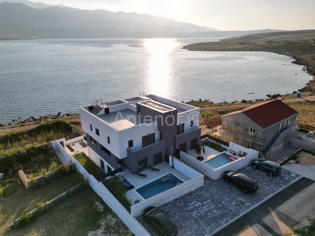 VINJERAC - penthouse prvi red do mora. Stan se nalazi na prvom katu zgrade. Površina stana je 134,16 m2. Apartman se sastoji od kuhinje, dnevnog boravka, 3 spavaće sobe, 2 kupaonice, balkona i krovne terase. Na krovnoj terasi nalazi se roštilj, bazen, vanjski tuš i ljetna kuhinja. Svi balkoni gledaju na more i Nacionalni park Paklenica. Apartman ima podno grijanje i klima uređaj, a obložen je vrhunskim talijanskim pločicama. Apartmanu pripada jedno parkirno mjesto.