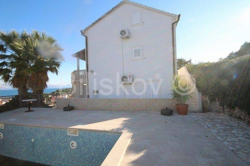 Located in Sutivan on the island of Brač, this detached house comprises three separate residential units, built on a 450 m plot. It features a swimming pool, parking for approximately 5 cars, and a landscaped garden all just about 150 meters in a straight line from the sea.