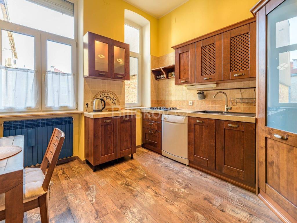 www.biliskov.com ID: 14890Down town, Šenoina StreetWe offer for rent a modernly furnished apartment on the second floor of a residential building, with a total area of 57 m.The apartment consists of a hallway, two spacious rooms, a kitchen, and a renovated bathroom with a toilet. The interior is luxuriously equipped, with carefully selected details and decor elements from around the world, creating a comfortable and sophisticated space.The apartment is newly renovated and fitted with high-quality appliances (a fully equipped kitchen, dishwasher, bathroom with washing machine) and brand-new modern furniture.The bathroom was fully renovated three months ago, offering modern and functional features.Located in an exceptional area near Zrinjevac Park, Branimir Center, and Zagreb's Main Train Station, it provides quick and easy access to key amenities, shops, restaurants, and public transport.Perfect for those seeking a comfortable and luxurious living space in the heart of Zagreb.