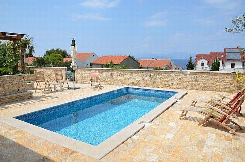 Brač, Sutivan, detached house; three apartments on three floors, built on a plot of 411 m2, swimming pool, parking for approx. 5 cars and cultivated garden.