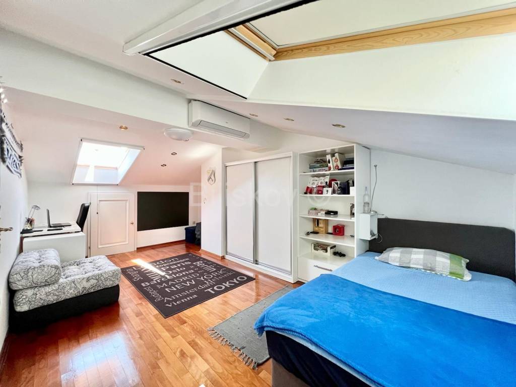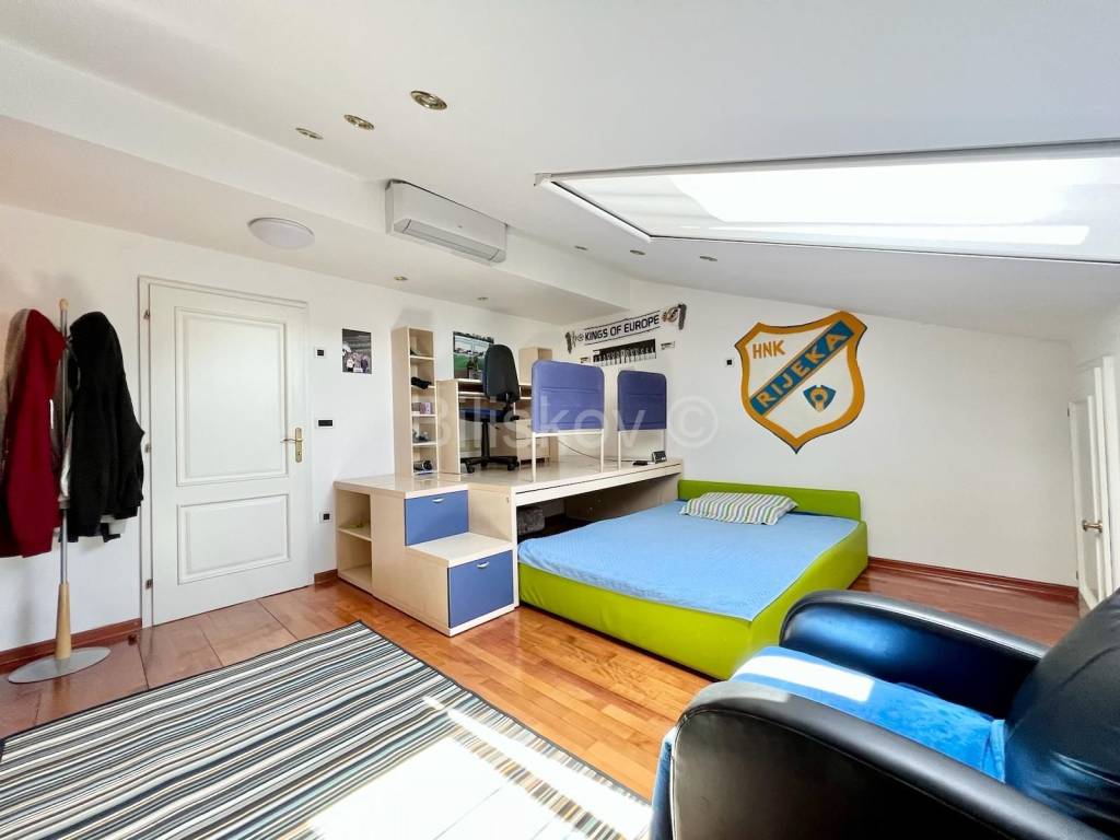 The last adaptation was in 2020. The apartment is very bright, has a lot of windows, is in excellent condition, has an attic which gives it extra personality, is very well maintained, and has a great view.The location of the building is in the public transport zone, and the bus stop is a 3-minute walk away. There is also a school, kindergarten, clinic and shop nearby. By car, it takes 7 minutes to Volovski, 10 minutes to Opatija, 14 minutes to Rijeka.The building is south-facing, but since the apartment is on the entire floor, it looks in all directions.