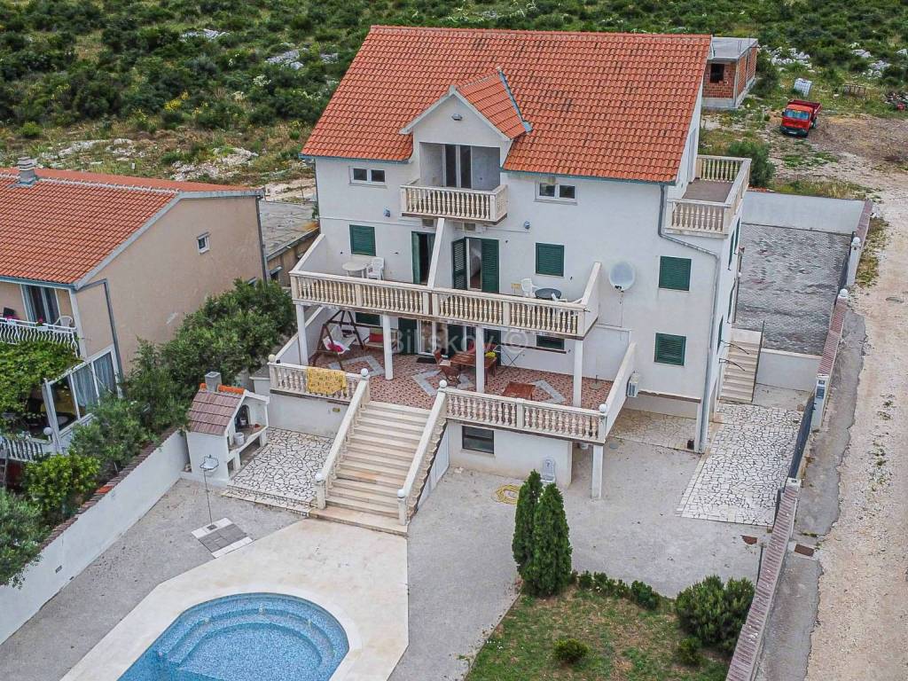 Trogir, Plano, samostojeća kuća sa bazenom površine 458 m2 na parceli površine 1010 m2.
