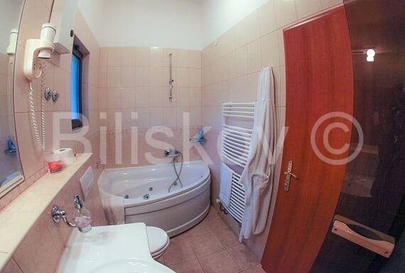 Treći kat se sastoji od jednog apartmana od 40 m2 smještaj za 4 osobe (soba, kuhinja s blagovaonom i dnevnim boravkom s kaminom u kupatilu su finska sauna i masažna kada.