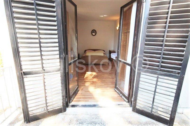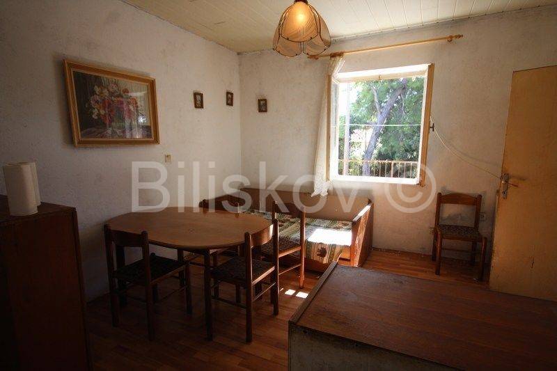 Vrboska, Hvar, small house of 70m2 with a large terrace of approximately 17m2 on a plot of 470 m2.The house is located 50m from the sea, beach and harbor.On the ground floor of the house there are two small taverns which could be turned into a garage and storage.1st floor: two bedrooms, kitchen with dining room and small living room.Quiet area, close to the sea, beach, harbor, town center, make this property interesting for tourism but also for a quiet family vacation.The house needs renovation.Parking for two cars is in front of the house.