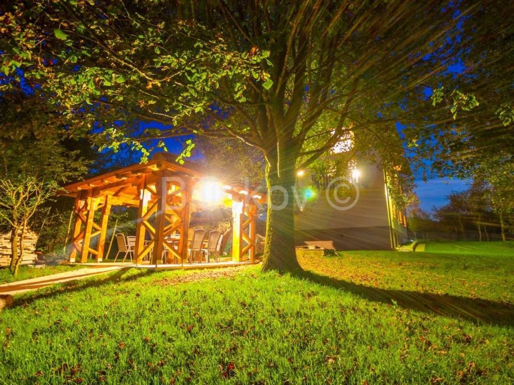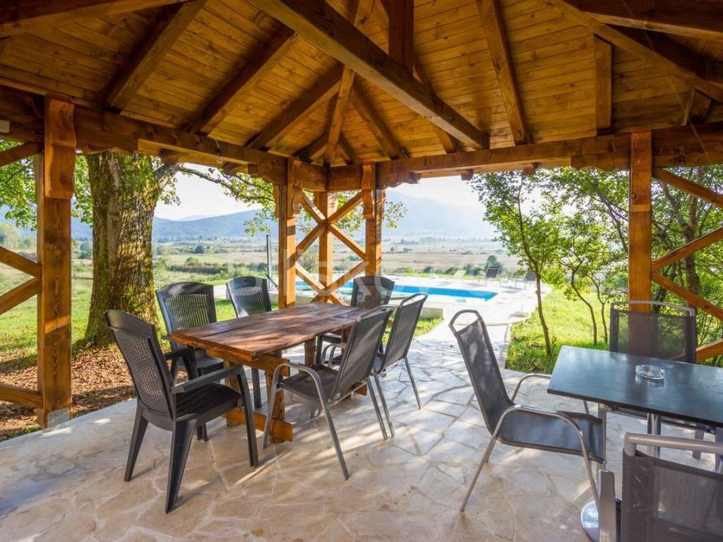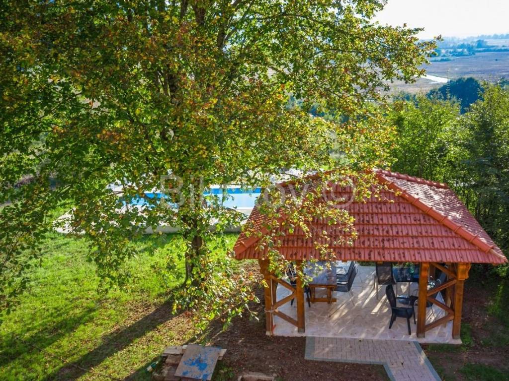 Također, južno od kuće se nalazi bazen i drvena sjenica.
