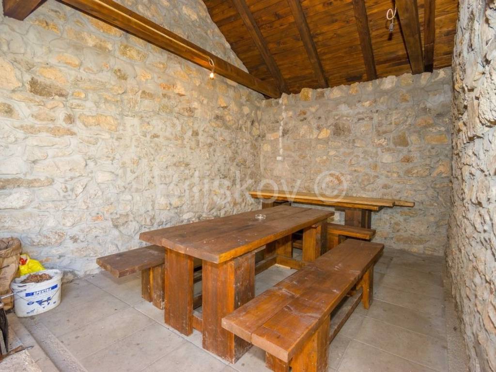 U dvorištu kuće se nalazi roštilj i kamena konoba, drvarnica, ostava te dva wc-a.