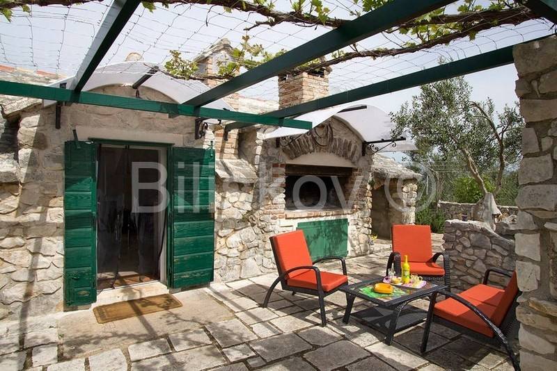 House and olive grove in Povlja - house area is cca104m2 - ground floor cca 45m2 - 1st floor cca 59m2 -700 m from the asphalt road, and the field road is paved 500m - panoramic view from Brela to Trogir - water tank receives 7.5 cars - electricity - gas central heating - sanitary water - air conditioningPlot area 200m2 - on the plot there are 45 olive trees (possibility of irrigation) + lemon trees, oranges, pomegranates.www.biliskov.com ID: 7319-1