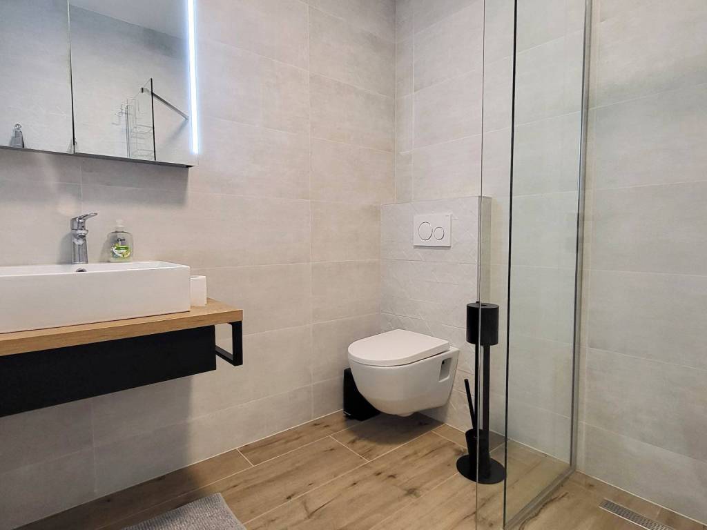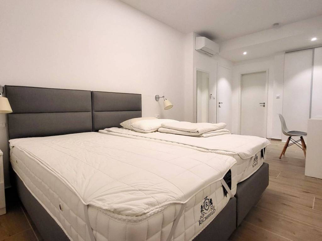 The apartment is fully furnished with high-quality furniture, including carpentry furniture. It is equipped with underfloor heating in all rooms, air conditioning, a ventilation system, PVC joinery, electric shutters and sun shades on the ground floor windows. The property also includes two parking spaces. The apartment has never been rented out to tourists, but has all the necessary documentation for tourist rentals, making it suitable for investment.