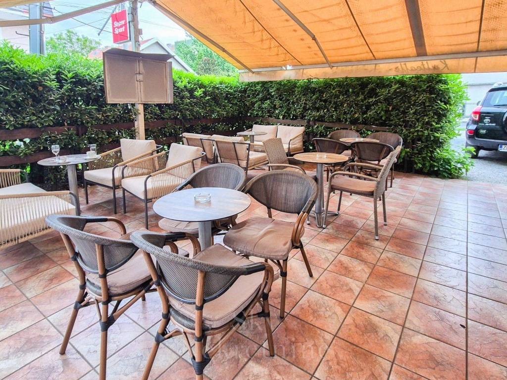 Prostor raspolaže s prostranom terasom koja omogućuje postavu petnaestak stolova, te privatnim parkingom za 56 automobila.