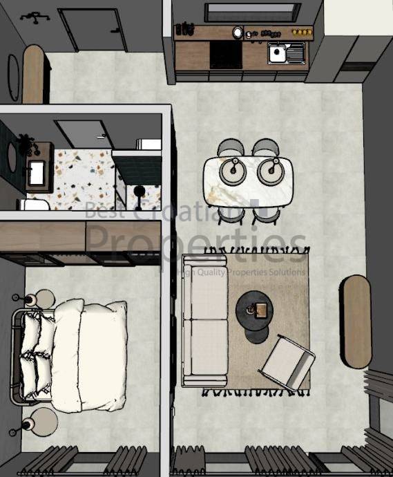 O stanu:Smješten na 1. katu moderne novogradnje, ovaj prostrani stan dizajniran je za komforan i moderan način života. Sastoji se od spavaće sobe, prostranog dnevnog boravka spojenog s kuhinjom i blagovaonicom, kupaonice, WC-a. Iznimno velika terasa idealna je za uživanje u zalascima sunca, opuštanje i druženje.