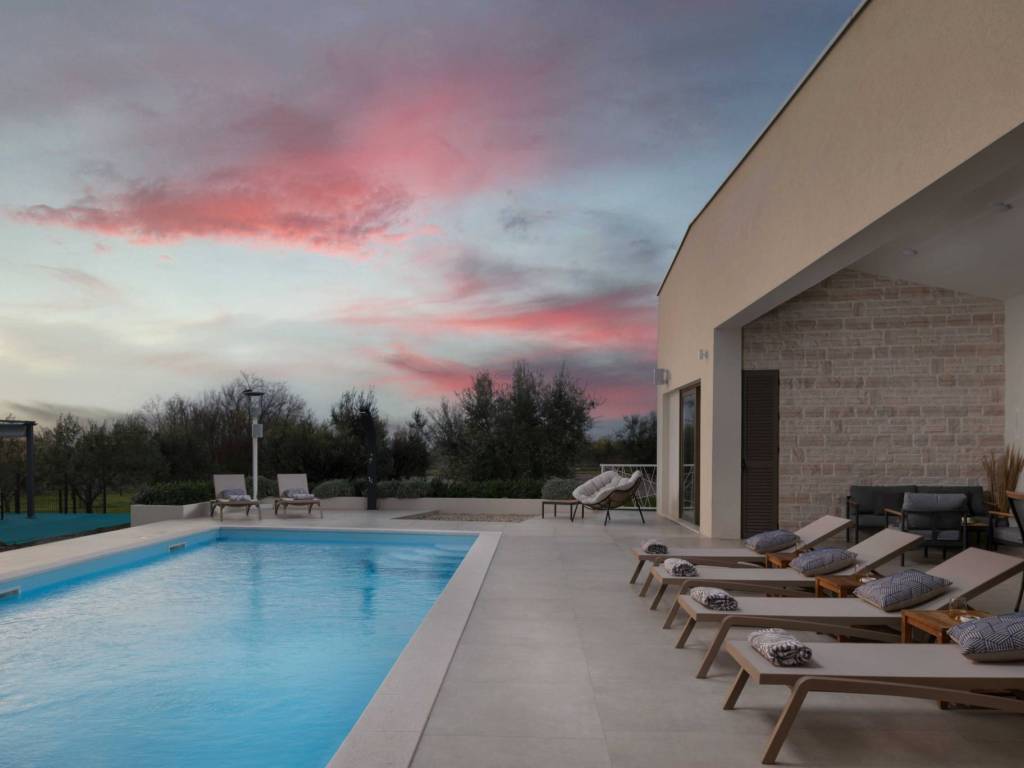 Prekrasanbazens ležaljkama i sunčalištem Jacuzzii vanjski tuš Uređeno dvorište s mediteranskim biljem, maslinama i potpunom privatnošću Velika okućnica pogodna za dodatne sadržaje (sportski teren, dječje igralište, vrt...)