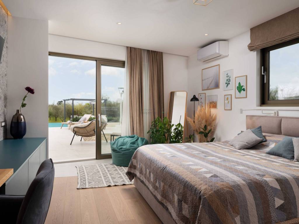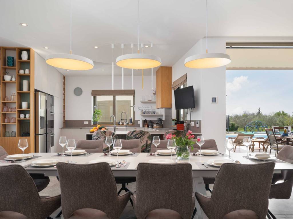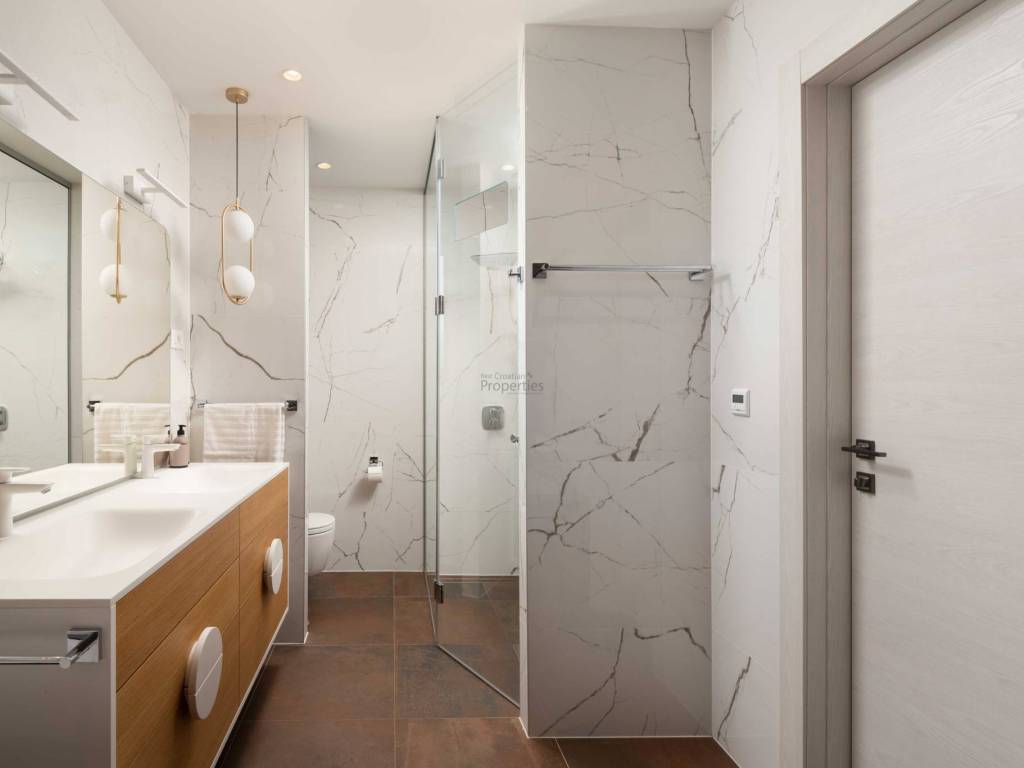 4 moderno uređene spavaće sobe, svaka s vlastitim kupaonicama maksimalna privatnost za sve ukućane i goste Prostrani dnevni boravak otvorenog tipa, povezan s blagovaonicom i potpuno opremljenom kuhinjom Gostinjski WC Elegantni interijeri opremljeni vrhunskim namještajem i završnim materijalima
