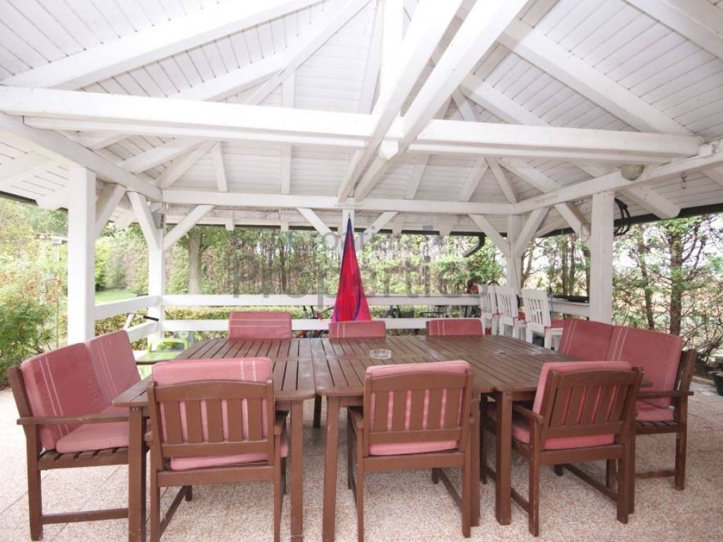 Kuća je sagrađena na zemljištu od 5.552 m. Osim uređene okućnice s hortikulturom na zemljištu se nalazi otvoreni bazen, sjenica s roštiljem, teniski / košarkaški / mali nogomet teren.