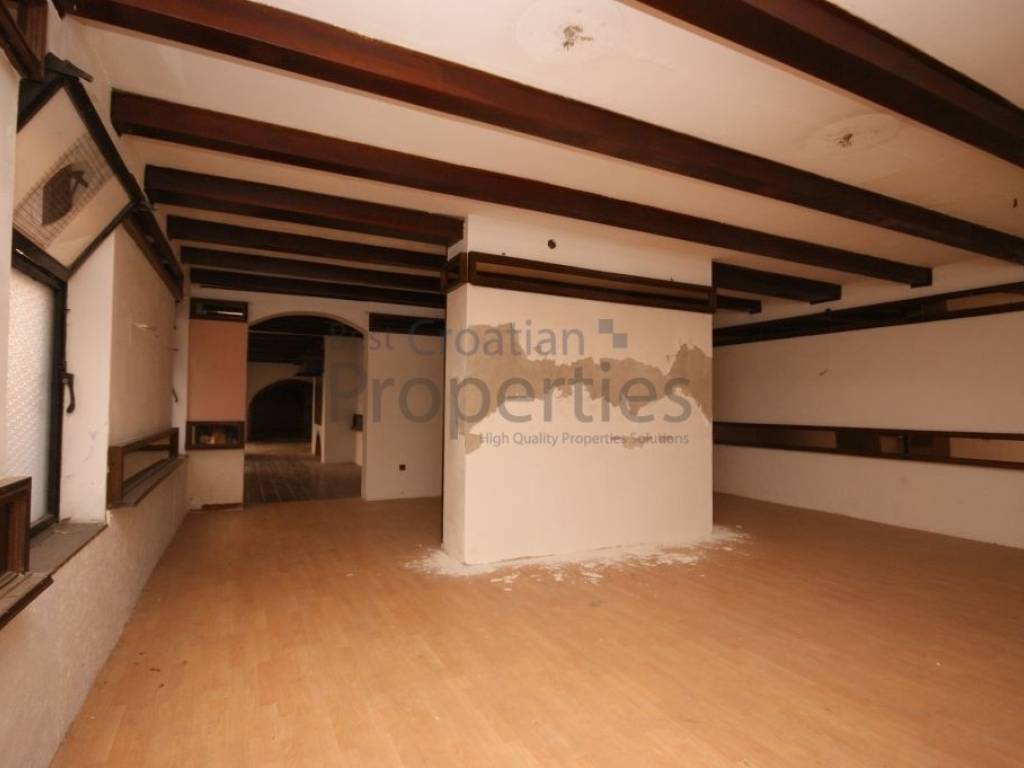 Prostor se sastoji se od: ulaznog hodnika, tri prostora sanitarija, tri WC-a, pisoara, kuhinje, gospodarskog ulaza, hladnjače, hodnika, dvije garderobe, tuša, ulaza u podrum i skladišta u podrumu, te natkrivenog prolaza u prizemlju. Ukupno podne površine 316,82 m2, natkrivenog prolaza u prizemlju, podne površine 16,98 m2.