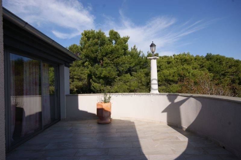 Ova luksuzna villa od netto 380 m2 sagrađena je 2012. godine na zemljištu od 1.486 m2. Na zemljištu se nalazi i manja kuća s tri odvojena studio apartmana sveukupne površine 80 m2.