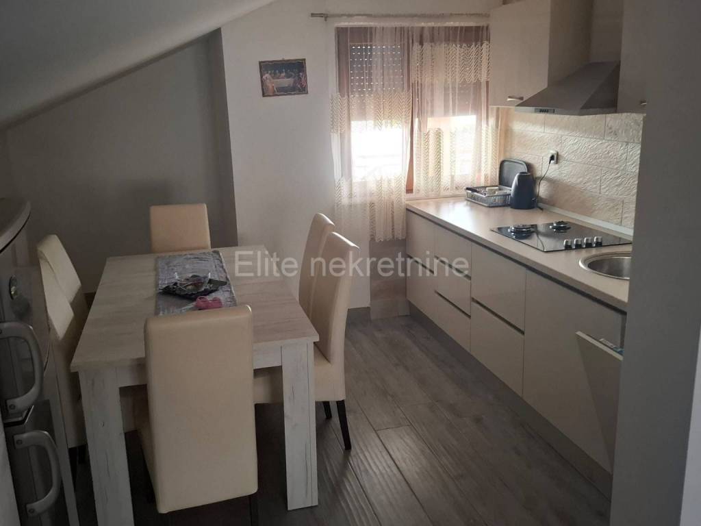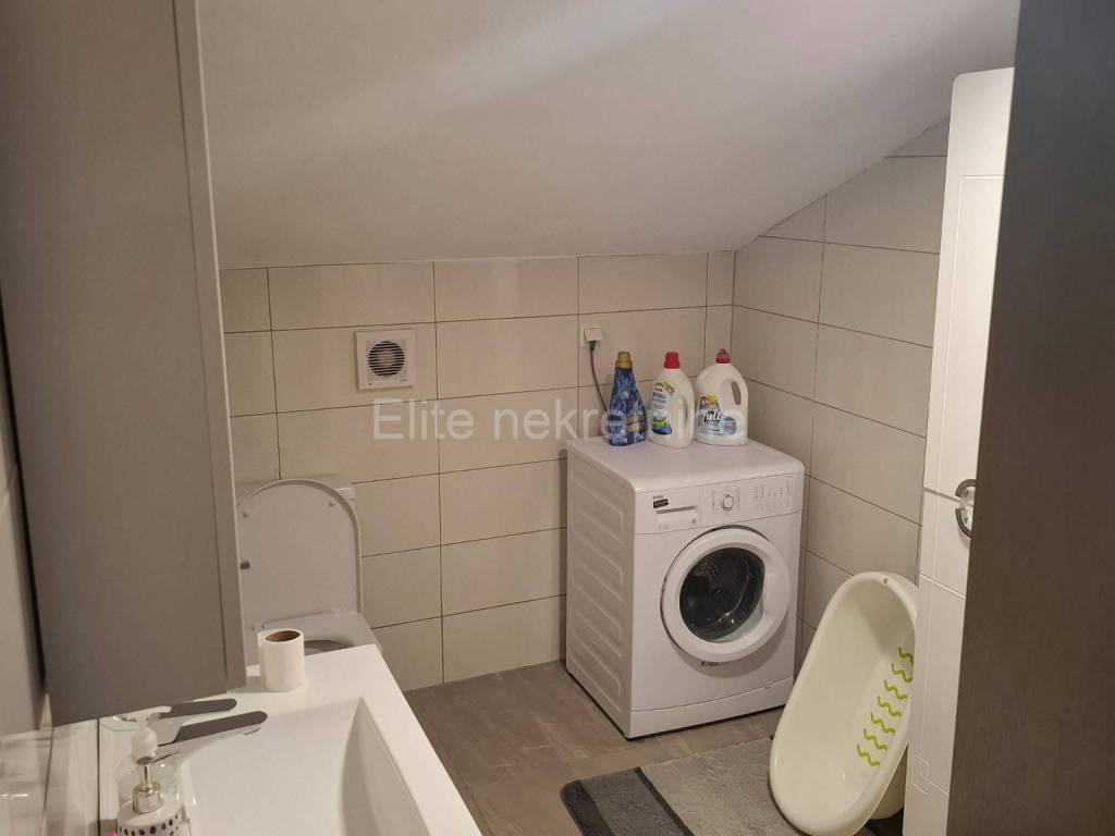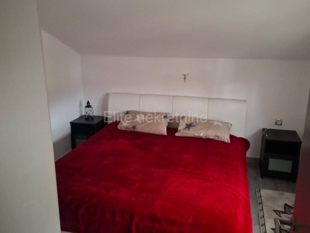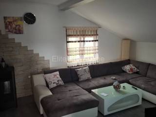 Dražice - apartment for rent in the center of Dražice, 85m2! We are mediating the rental of a newly renovated apartment in the attic of a private house. The apartment has 85m2 and consists of two bedrooms, a living room with kitchen, bathroom, hallway and a large terrace. The entrance is completely separate. The apartment is entered via the terrace. The apartment also has a parking space within the garden. A pellet stove is used for heating. One room has a double bed, and the other has a single bed. All important amenities are nearby the house. The agency fee is charged in accordance with the General Terms and Conditions, which are available at www.elite-nekretnine.hr/opci-uvjeti-poslovanja.