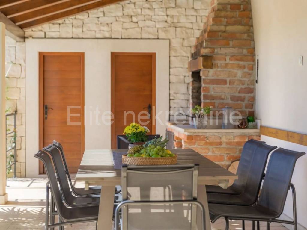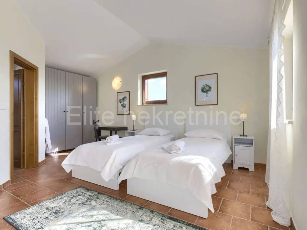 A beautiful villa for sale just 8 km from Vodnjan and Svetvincenat and 17 km from Pula, ideal for a quiet family life or investment in tourism. This well-built and fully equipped villa is spread over two floors, with a total of 200 m of living space, 4 bedrooms and 4 bathrooms, and is located on a fenced plot of more than 1,500 m.