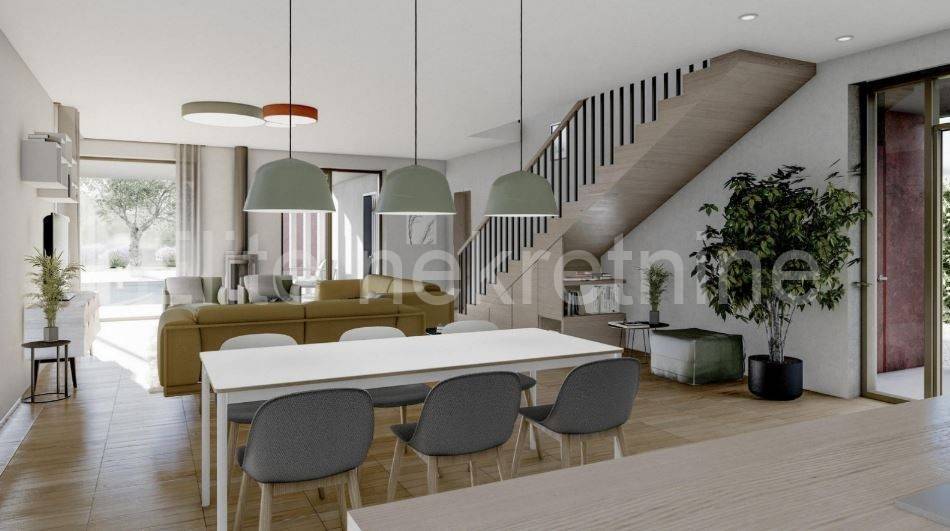Svaka vila sastoji se od vije etaže prizemlja in kata. Prizemlje nudi prozračan and funkcionalan dnevni prostor otvorenog tipa koji objedinjuje kuhinju, blagovaonicu and dnevni boravak, stvarajući ugodnu atmosferu za druženje and opuštanje. Dodatnu praktičnost pružaju unutarnje and vanjsko spremište, kao i posebna prostorija predviđena zanunu ili fitness.