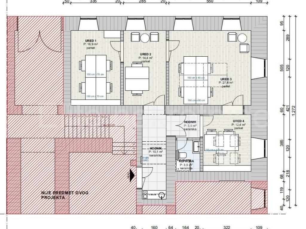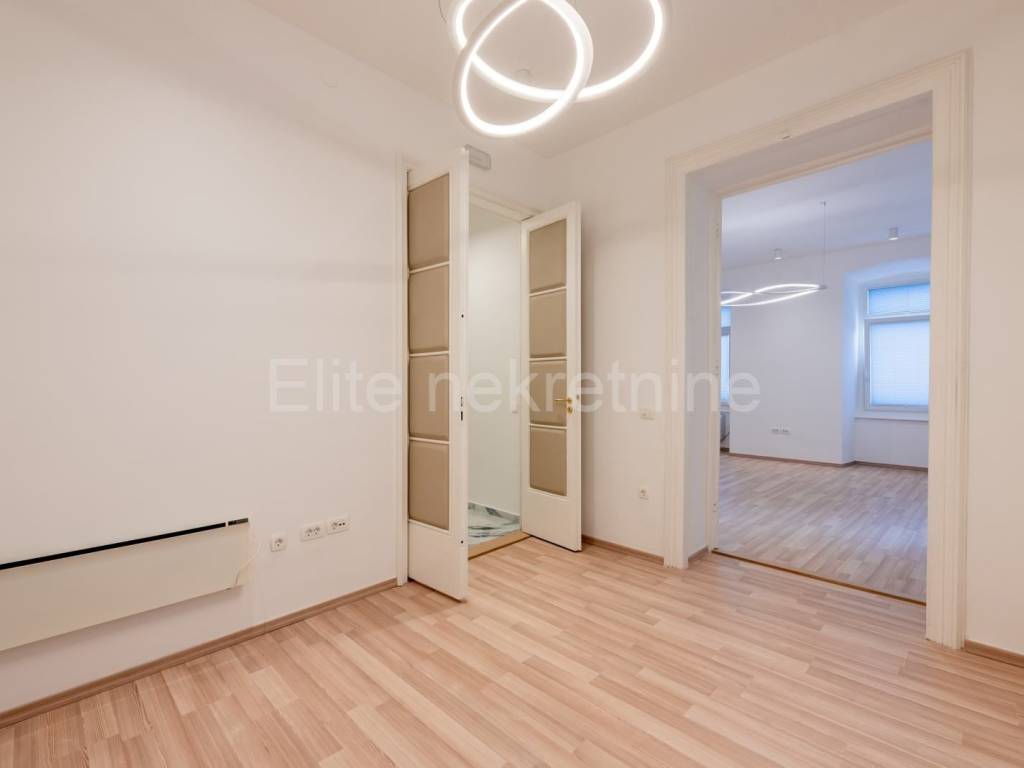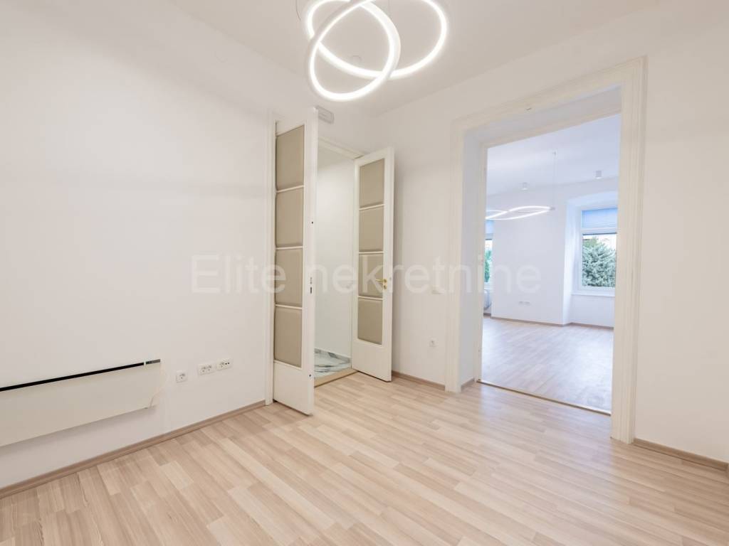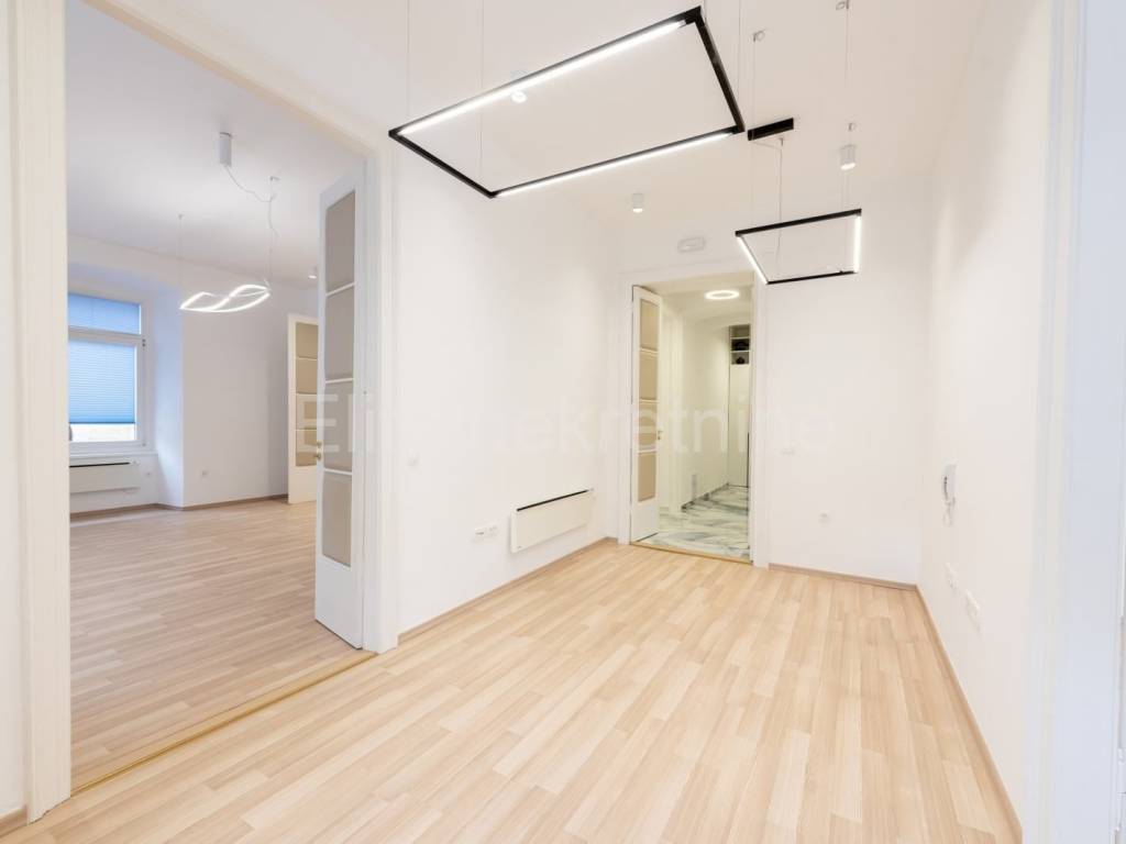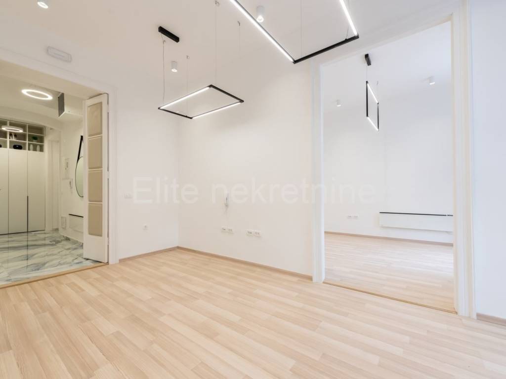 Prostor se sastoji od: Četiri prostrane sobe, Hodnika, Kupaonice, Čajne kuhinje izrađene po mjeri.Oprema i posebnosti prostora: Kvalitetan uredski namještaj. Namještaj je prilagođen modernomposlovanju, iako nije prikazan na fotografijama. Luksuzno uređena kupaonica s dizajnerskim detaljima. Nova mrežna instalacija s 32 mrežna priključka, idealna za moderno poslovanje (kompjuteri, printeri, kamere, mrežni diskovi). Dvostruki optički kabel omogućuje korištenje dva pružitelja internet usluga s maksimalnom brzinom. Nove instalacije struje s ukupno 56 utičnica svaka prostorija ima optimalnu pokrivenost. Efektna dizajnerska LED rasvjeta u svim prostorijama. Svaka prostorija opremljena klima uređajem s opcijom grijanja i hlađenja, uz kontrolu putem mobilne aplikacije. Norveški radijatori kao dodatna opcija grijanja.