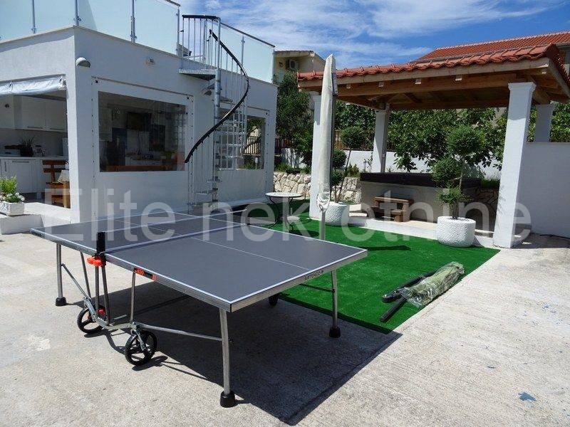 We are selling a villa in Stivašnica (Ražanj), only 130 m from the sea.On the ground floor of the villa there is an apartment consisting of 3 double bedrooms, living room and kitchen, hallway, bathroom and toilet, with an outdoor terrace of approx. 35 m2, and two barbecues.On the first floor is an apartment consisting of 2 double rooms, a kitchen with a dining room, a bathroom and a covered terrace of 30 m2.On the northern part of the plot there is an auxiliary facility with a fully equipped auxiliary kitchen, barbecue, swimming pool that is hidden from view from the street, a jacuzzi for 6 people, and outdoor showers. A large area for sunbathing on deckchairs, playing table tennis and socializing in the evening.The house has an alarm and video surveillance, electric heating radiators and is fully air-conditioned.The plot is fenced, provides intimacy, is fully horticulturally decorated with Mediterranean plants.There is enough space to park 4-5 cars.The price includes the use of moorings in the harbor and 3 moorings in Stivašnica bay.