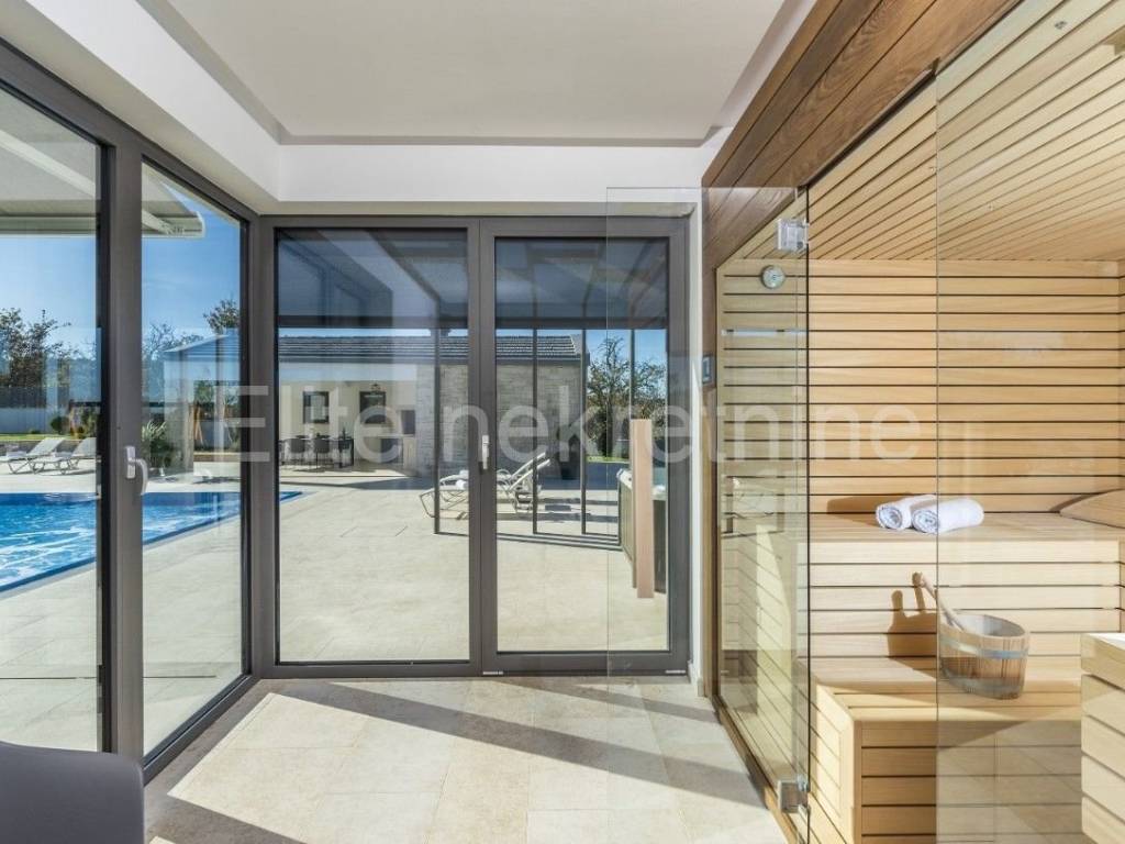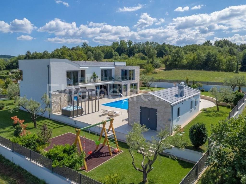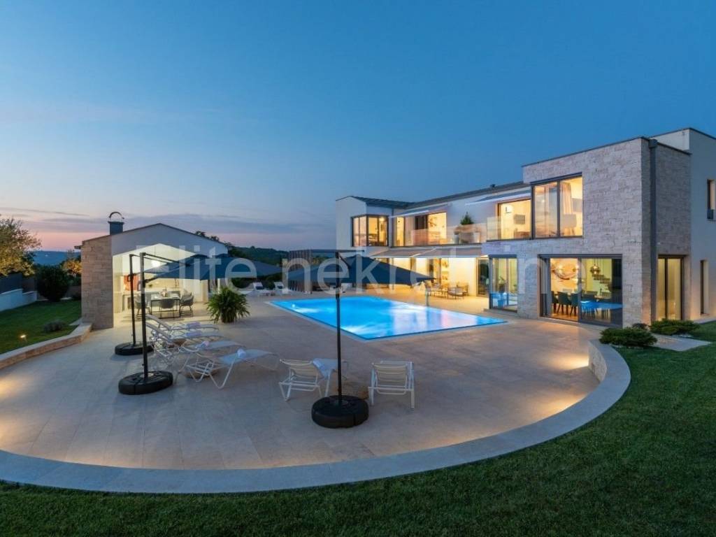 U široj okolici Motovuna izgrađena je vila od raskošnih 357 četvornih metara stambene površine s preljevnim bazenom od 60 četvornih metara povezanim ljetnom kuhinjom, natkrivenom terasom, spremištem i roštiljem