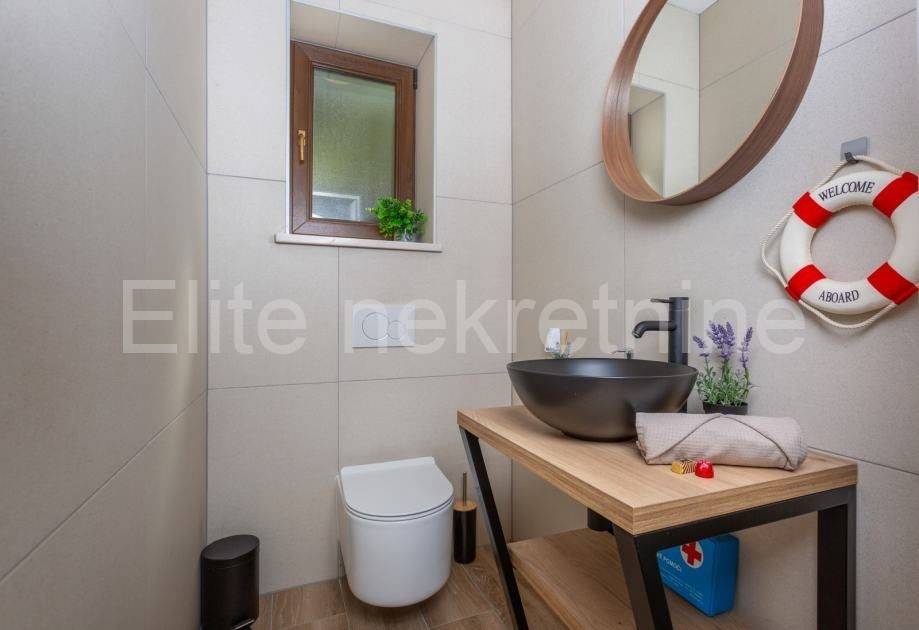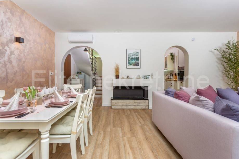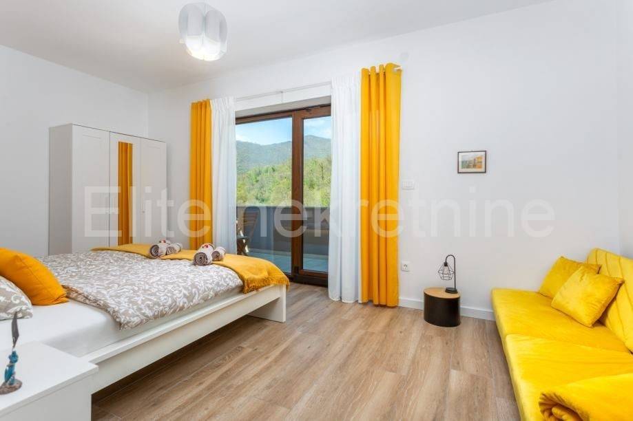 Opatija surroundings, Veprinac - sale of a decorated house with a garden and a swimming pool! Semi-detached family house for sale in a quiet part of Veprinac. The house has 177 m2 with 400 m2 of common garden. The house consists of 2 floors and an additional apartment on the ground floor. It has a shared pool and jacuzzi, 3 parking spaces with a private garden. The house was renovated in 2023 and is fully furnished. It has two rooms, living room, kitchen and bathroom. Everything is defined by the floor plan and all accompanying documentation.