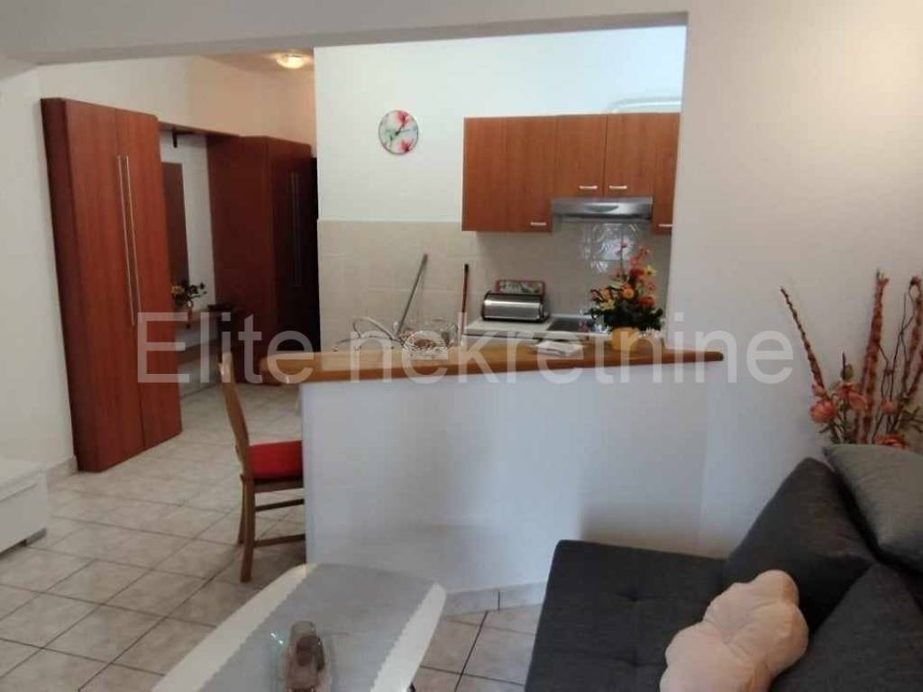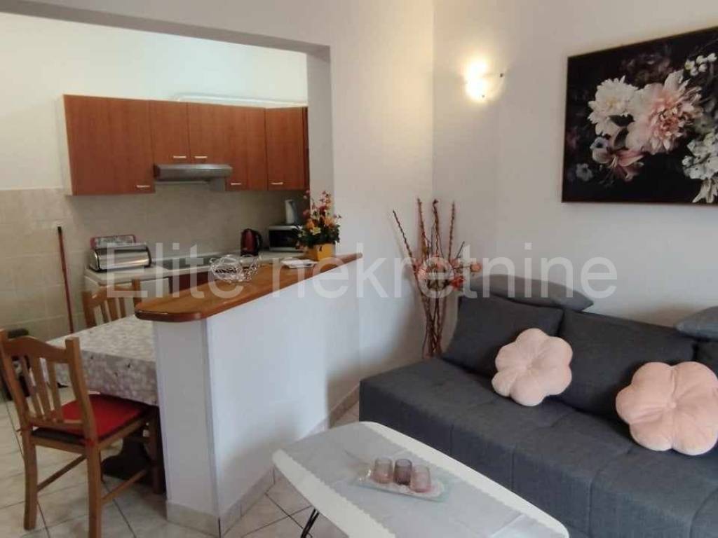 Medulin - apartment for sale, 46m2, great location! Furnished flat/apartment for sale near the center of Medulin.An easy ten-minute walk to the sea, this apartment is ideal for tourist rental. Equally, due to the proximity of all facilities, it is also great for a year-round stay. The apartment is located in a smaller building with a landscaped garden where parking spaces are provided for tenants, especially important in the summer when this widely known tourist spot is teeming with numerous visitors who have seen Medulin as a favorite destination for years. The apartment contains: an entrance hall, a kitchen with a dining room plus an open living room, one bedroom, a bathroom and a larger balcony/terrace.It is fully furnished and equipped with security doors and air conditioning heating/cooling.