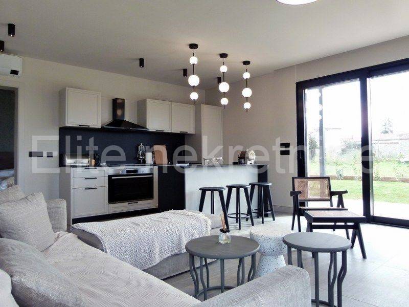 A fully furnished villa of modern design in Krnica is for sale. A place that is only 5 minutes away from the sea and the first beaches by car.In the immediate vicinity of the villa there is a superb tavern 'Da Rocco' which offers excellent dishes such as fish, meat and pasta, in the very center of Krnica there is also a Pizzeria 'Kum' and only a 5-minute drive takes you to the village of Rakalj, as well as a large selection of wonderful wild beach.