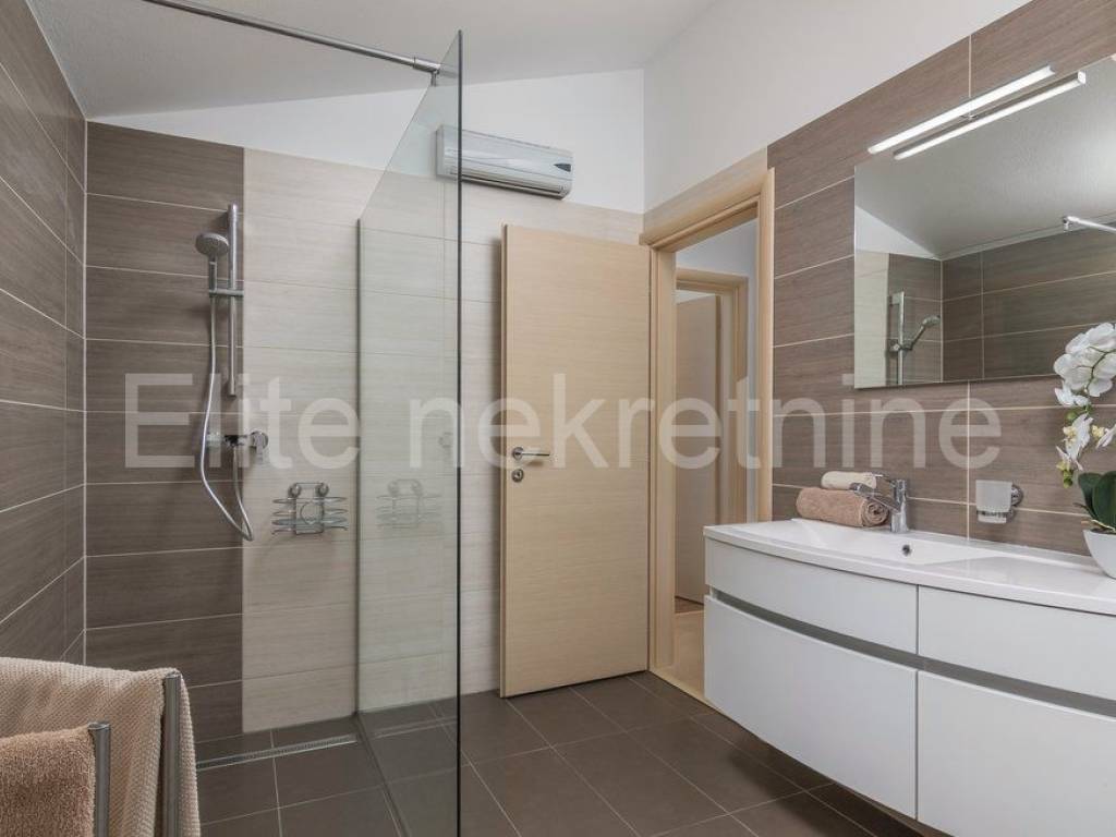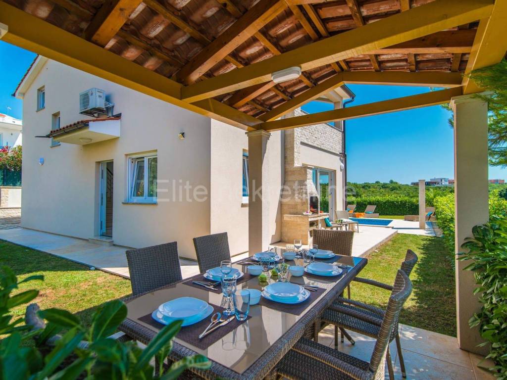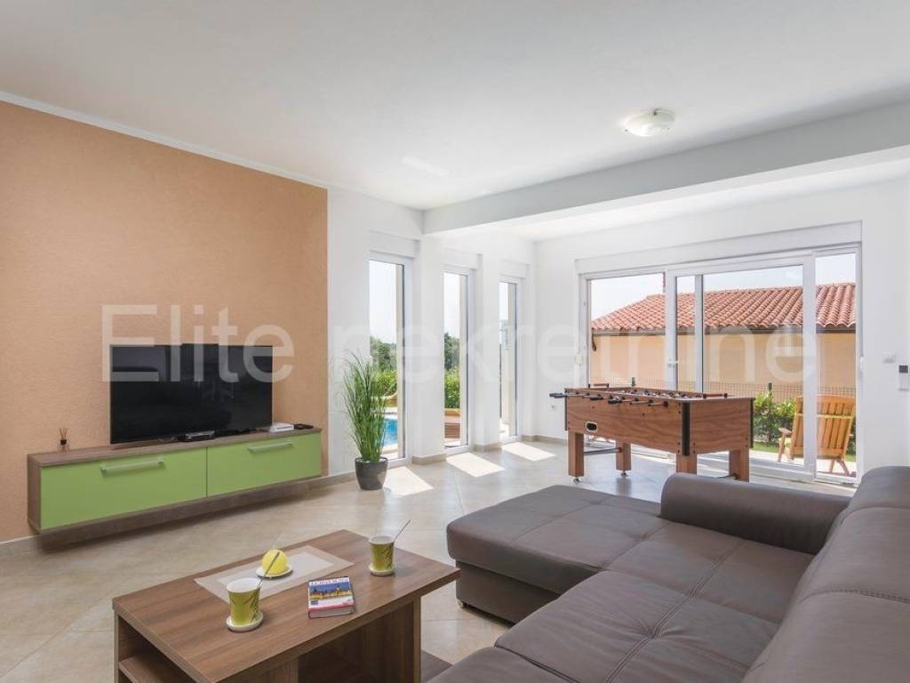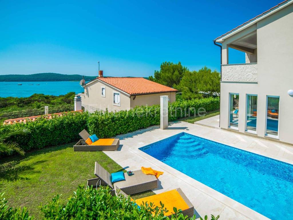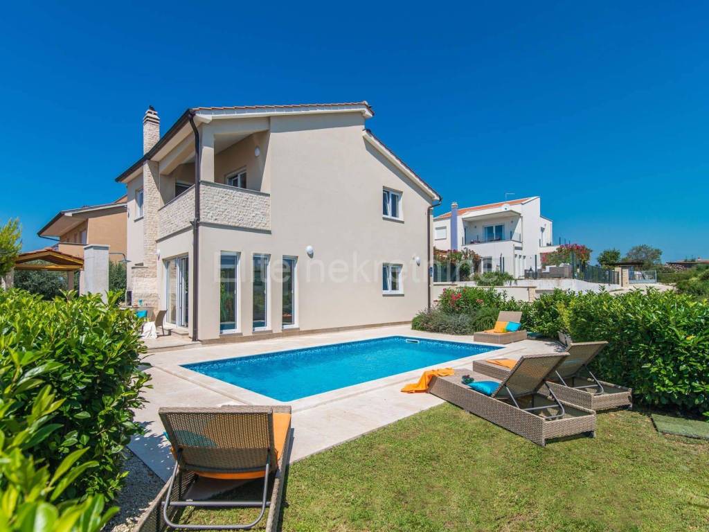 Pomer - Villa with pool and panoramic sea view This villa with a swimming pool and a wonderful view of the sea is located on the very edge of Pomerania and only100 m from the sea.The total size of the plot is 400m2 and in that space there are two paved parking spaces, a storage room,green area, playground for children and a 28m2 swimming pool with a sun deck from which you can enjoy the panoramic viewview of the sea and the playful green coast.The covered part next to the villa serves as an outdoor dining area. The villa is designed as one residential unit. From the corridor you enter a large, open space inwhich has a kitchen, dining room and living room. This area is connected to the swimming pool and sun deck by large glass wallsso that maximum enjoyment and simple communication of the external and internal space is possible. On that floor there is also a bathroom with a toilet and a small storage room.On the second floor, there are three bedrooms, two of which have access to a covered terrace with a beautiful view of the sea and the entire Medulin Bay.The villa is sold fully furnished and can be a wonderful place to live connected to nature and the sea or a property for tourist rental. The proximity of Medulin, ACI marina, glamping, Kamenjak nature park, Pula and many other interesting places opens up a lot of possibilities for fun and enjoyment in the surrounding area. Direct contact with the agent: Romana S. | Mob. 091 4884 658 | Email: romana_eliteestate@outlook.com