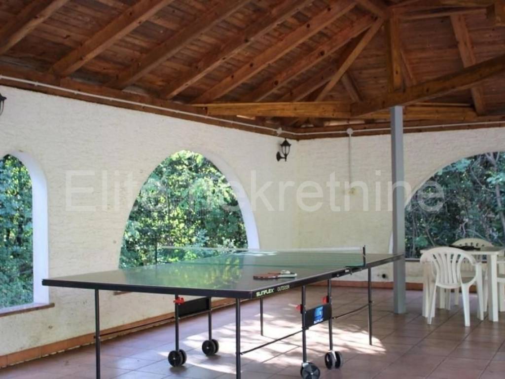 Ovo impresivno zdanje s 14 spavaćih soba i 9 kupaonica nalazi se na samom vrhu Poreča i nudi savršen spoj udobnosti, luksuza i zabave. Osim prekrasne arhitekture koja stvara osjećaj prostranosti i slobode, može se pohvaliti i bazenom na krovu s toboganom i prekrasnim pogledom na more.Svijetla i prozračna terasa glavnog središnjeg apartmana idealna je za zabavu gostiju, dok veliki vrt i vanjski roštilj pružaju savršen prostor za opuštanje i rekreaciju. Uz čak 744 četvorna metra stambene površine , ova nekretnina ima sve što je potrebno za ugodan, luksuzan i zabavan boravak. Centralni apartman ima i unutarnji bazen za opuštajuće zimske trenutke.Svaki apartman ima najmanje jednu vlastitu kupaonicu, što osigurava privatnost i udobnost, a zajedničke prostorije krase jedinstveni arhitektonski elementi. Kuća je također povoljno smještena u blizini obale, restorana i drugih rekreacijskih mogućnosti, tako da ćete moći uživati u svemu što Poreč ima za ponuditi.Ne propustite priliku posjedovati ovu prekrasnu ljetnu kuću s bazenom na krovu s toboganom i prekrasnim pogledom na more. Kontaktirajte nas još danas kako biste razgledali nekretninu i sami doživjeli ljepotu Poreča!