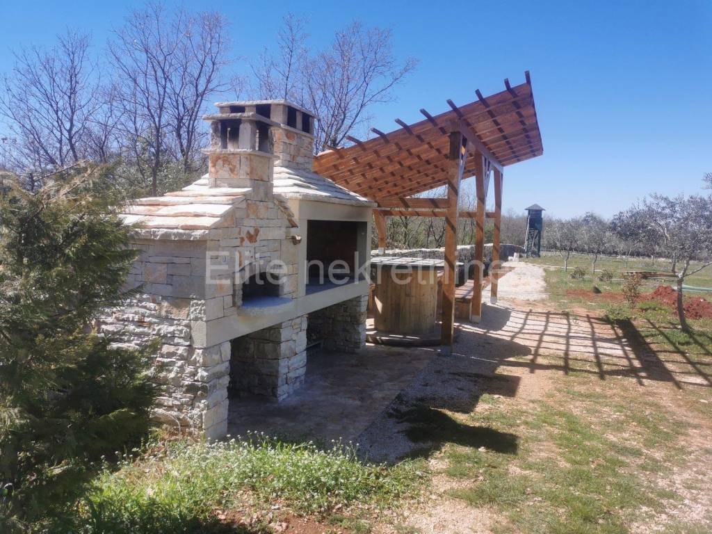 U jakom blagom padu se spušta do lokalne asfaltirane ceste.Ima 13.840m2. Na zemljištu je dovedena voda. Napravljena je i sjenica na koju će biti postavljeni solarni paneli ukoliko bude potrebe za strujom. Uz sjenicu je roštilj i idealno je mjesto za odmor u prirodi. S jednog dijela terena se vidi i more. Jako je lijepo uređeno i održavano tako da će biti užitak na njemu provoditi dane baveći se maslinama i uživajući u druženju. Dokumentacija i vlasništvo su uredni.Ukoliko tražite svoje mjesto pod suncem i volite skladno uređenu prirodu i masline ovo je odličan izbor.