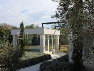 Next to the villa, in its beautiful garden, there is a swimming pool with a sunbathing area, a shower, a storage room and an auxiliary building that can be converted into a guest house or a wellness area.