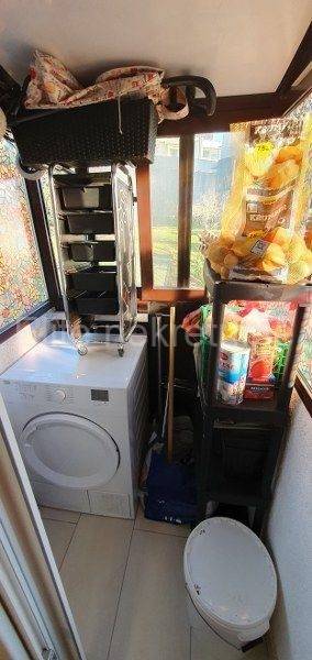 On the first floor there is a kitchen, a living room, two bedrooms, a balcony and a loggia.