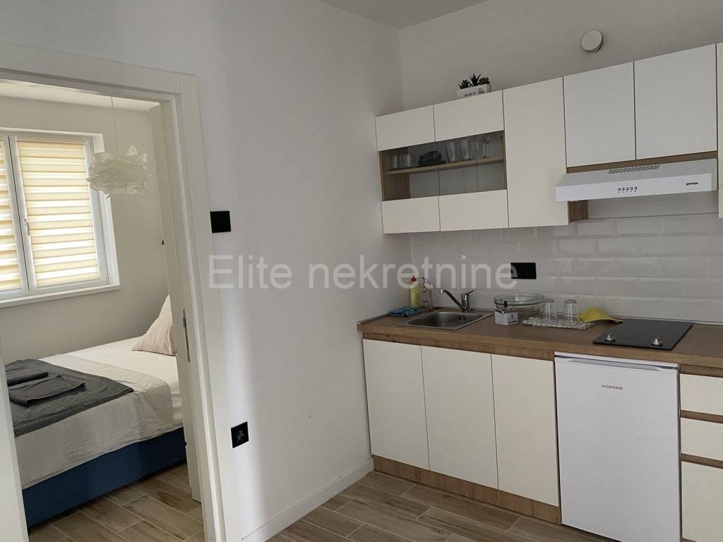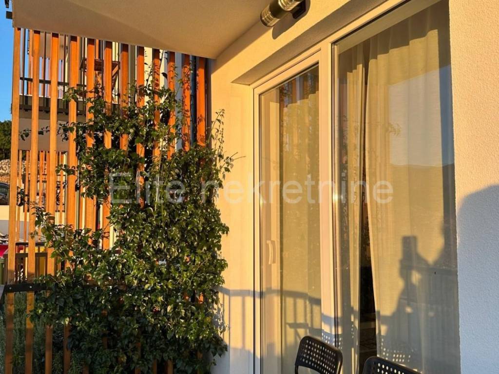 The house consists of a ground floor and 3 floors, i.e. 4 residential units, with a total area of 166 m2.The apartments consist of a bedroom, a living room, a kitchen with a dining room, a bathroom and a balcony with a fantastic view of the sea.In front of the building there is a secured parking space for several small pets and a communal swimming pool for use.The landscaped garden offers space for relaxation.Panoramic sea view, top-quality construction, swimming pool, spacious garden, high-quality construction... these are just some of the great advantages of this property that can serve as a tourist investment or a property for living!