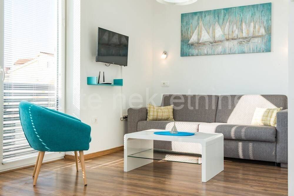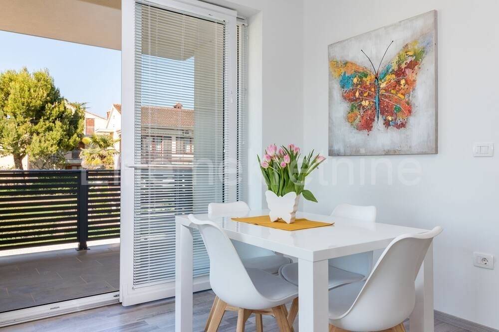 600 meters from the center of Medulin and 350 meters from the beautiful beaches of Medulin, an apartment villa of 440 m2 living area is for sale. The villa was built in 2018, extends over 3 floors and has 6 apartments. Each apartment is sunny, the rooms are spacious with elegant furniture, a kitchenette and a private terrace with a view of the sea.