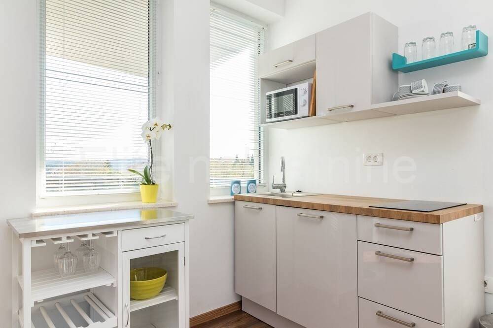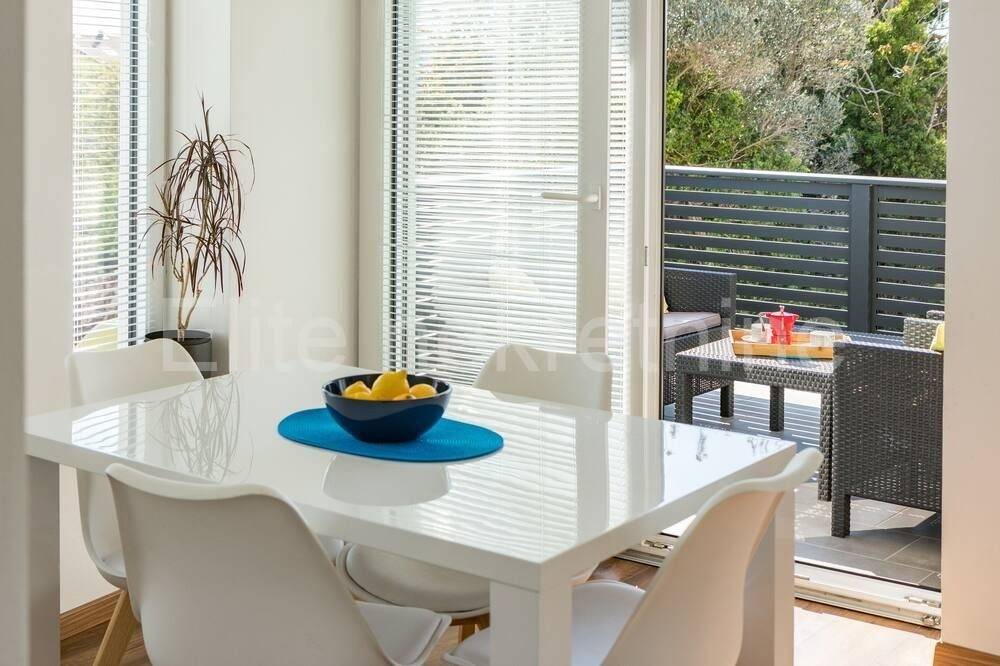 A landscaped garden of 407 m2 with an outdoor swimming pool of 32 m2, a garden with barbecue equipment and a sun deck provide real pleasure for apartment guests in this apartment house of modern architecture. Private parking for 6 cars.