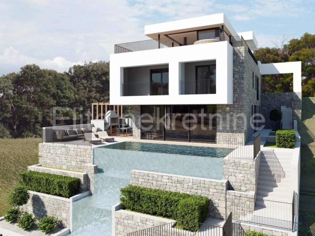 Na vrhunskoj lokaciji u Opatiji, nedaleko od samog centra, sa očaravajućim pogledom na Opatiju i Kvarner, prodaje se moderna smart villa, na 3 etaže.