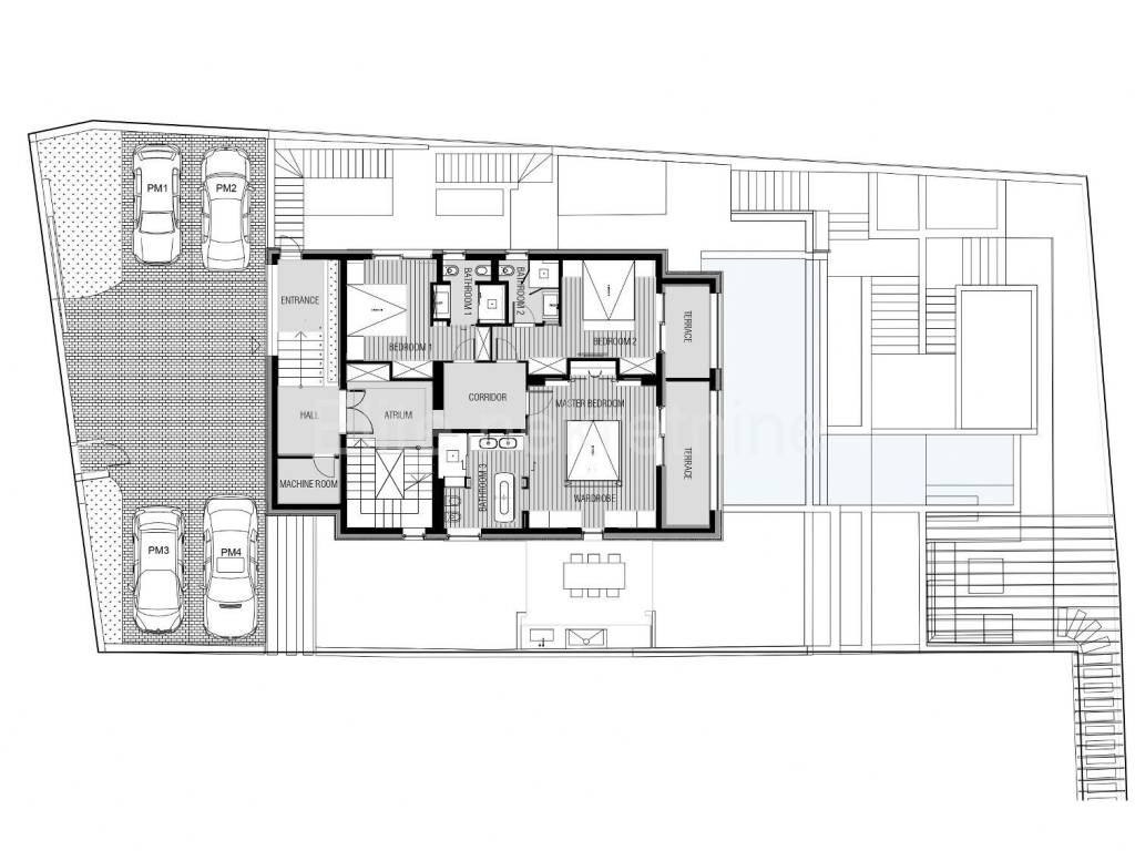 Villa se sastoji od prizemlja i 2 kata, ukupne stambene površine od 300 m2.