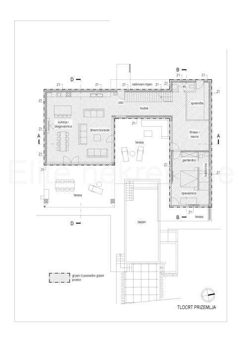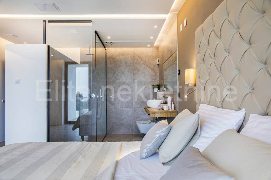 This modern property consists of 4 luxury bedrooms, each with its own bathroom, living room, kitchen, dining room in open space concept, hallway, storage room, fitness and sauna, and a beautiful exterior with an unavoidable pool.