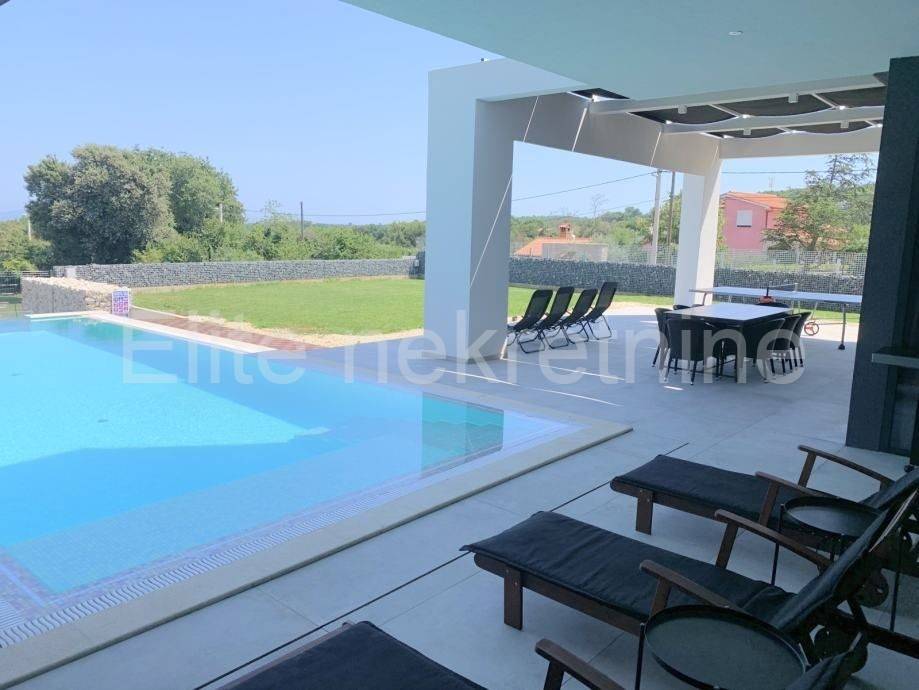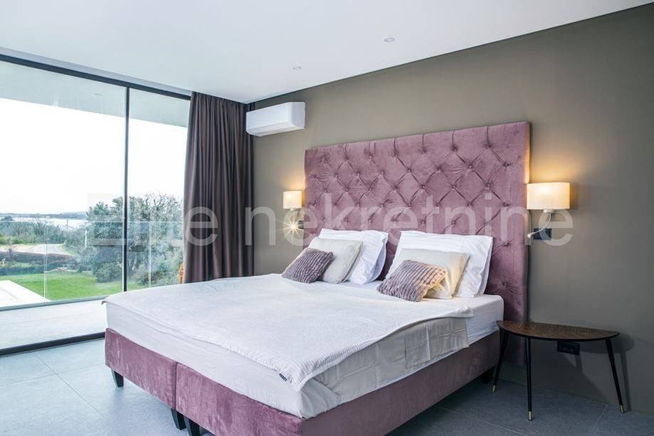 Liznjan- beautiful villa, 4 bedrooms + living room, 480m from the sea, open space concept, wardrobe, storage, terrace, garden, fitness, sauna, balcony, security door, video surveillance, video intercom beautiful exterior, swimming pool, parking alarm, activation system distance, irrigation, view of the sea and the islands of Cres and Lošinj