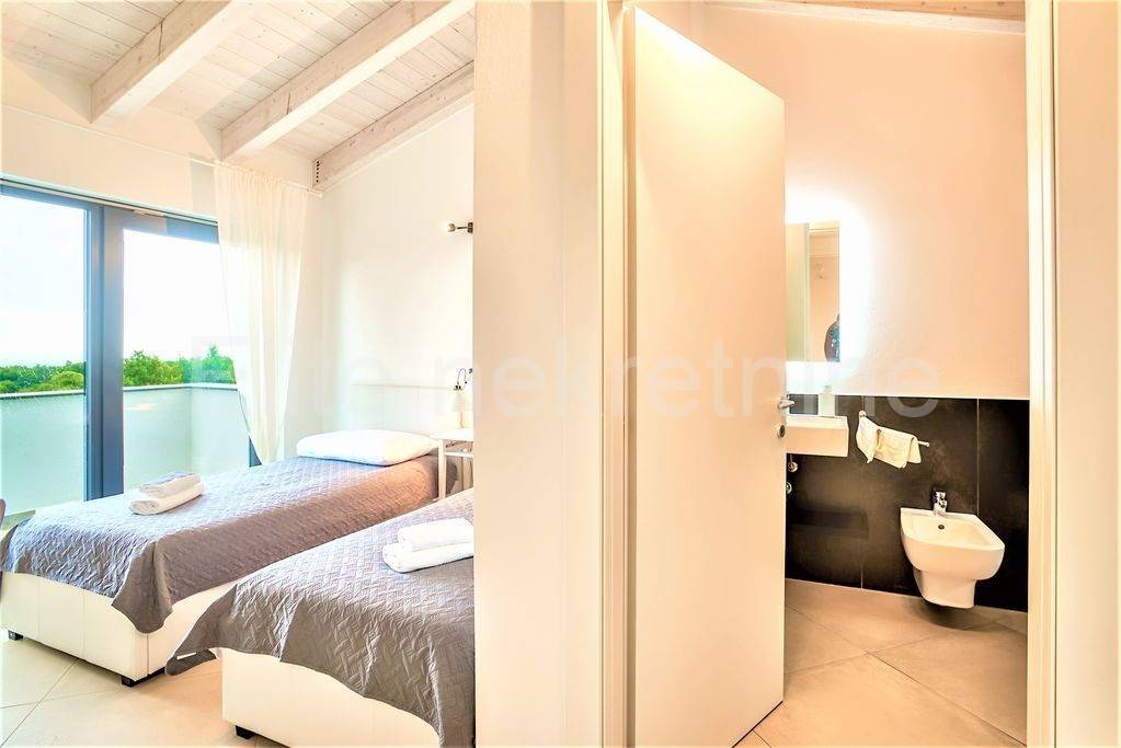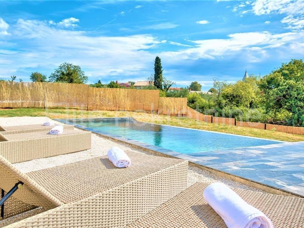 Luxury, fully furnished two-storey villa for sale in a great location, close to the sea! The villa consists of a kitchen, bathroom, living room, covered outdoor terrace, and landscaped garden with swimming pool! In addition to the basic information given above, it is difficult to describe the quality of the luxury the house possesses! We recommend coming to the property for the perfect impression! 25 km from Pula, 35 km from Rovinj and 90 km from Rijeka.