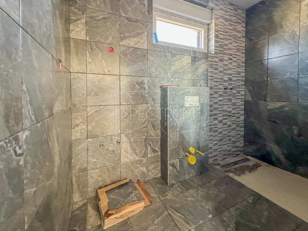 The apartment is located on the 1st floor of a newly built residential building with 5 residential units. The area of ​​the apartment is 91.05 m2. The apartment consists of a living room with an open space concept kitchen and dining room, a hallway, 3 bedrooms, 2 bathrooms and a terrace. One bedroom has its own private bathroom. The terrace is accessed from the living room. The apartment also has a spacious roof terrace with a view of nature and greenery. Electricity and water installations have been carried out on the roof terrace, so there is a possibility of installing a summer kitchen or a hydromassage bath. Heating is regulated by air conditioning. The apartment is sold in the turnkey phase (finished floors and sanitary facilities, without furniture).