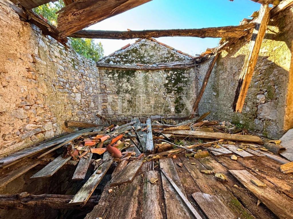 The house was built before 1968 and is currently in a dilapidated state, without a roof and with partially collapsed interior sections, giving the future owner complete creative freedom in designing and restoring. Electricity and water connections are available right next to the plot, further simplifying the renovation process.