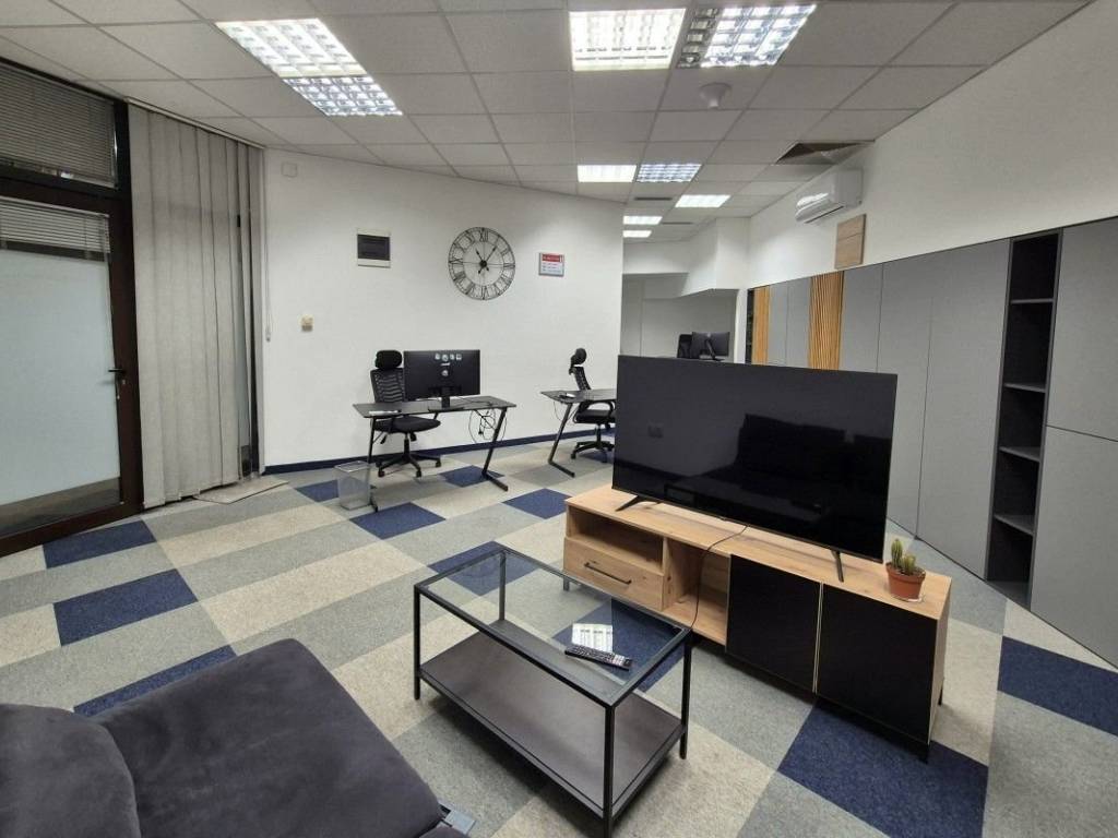 Uredski poslovni prostor, za zakup, smješten u poslovnoj zgradi u bizini centra grada. Prostor je ukupne površine 71,3 m2, a sastoji se od glavne prostorije s čajnom kuhinjom i dodatnim odvojenim dijelom te prostorije za sastanke. Obje prostorije imaju zaseban ulaz, što je dosta praktično za svakodnevnu poslovnu cirkulaciju. Muški i ženski sanitarni čvor se nalaze izvan prostora i dijele se s još jednim uredom. Prostor je smješten na etaži ispod prizemlja, ali sa prostranim atrijem ispred, te komunikacijom liftom sa ostatkom zgrade. Okruženje u kojem se prostor nalazi je užurbano, poslovno i atraktivno za rad te uredno i pažljivo održavano. Prostor je kompletno uređen i opremljen (stolovi, stolice, računala) za 6 radnih mjesta. Postoji opcija unajmljivanja parkirnog prostora u garaži, dok se javni gradski parking nalazi u neposrednoj blizini. Ovaj prostor predstavlja odličan izbor za manje timove ili tvrtke koje žele kombinaciju privatnosti i dostupnosti u poslovnom okruženju s reputacijom. Uz ovaj prostor postoji opcija zakupa za dodatnih 100 m2 fizički odvojenog susjednog prostora, za tvrtke koje trebaju veći prostorni kapacitet.