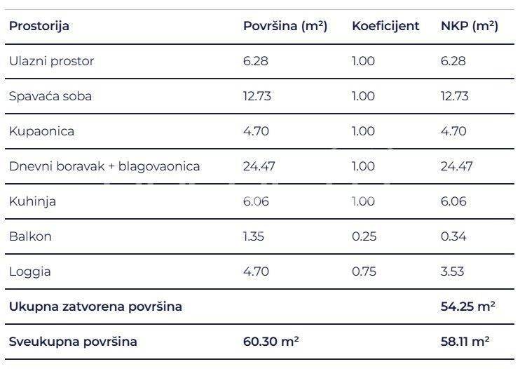 Prostrani dvosobni stan sastoji se od spavaće sobe, kupaonice, hodnika, dnevnog boravka s kuhinjom i blagovaonicom, loggie i natkrivenog balkona.