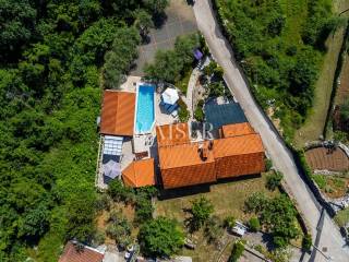 Kaiser Immobilien presents a beautiful detached house with two separate residential units near Vrbnik in the village of Risika on the edge of the green belt. Near Vrbnik, on a plot surrounded by greenery, there are two coastal houses that are connected to each other. The larger house consists of a living room with a kitchen and dining room, two bedrooms, a bathroom and a toilet. There is also a tavern with a wooden interior next to it. The second house is slightly smaller in size, consists of a living room with a kitchen and dining room, two bedrooms, a bathroom and a toilet, and has access to an uncovered terrace with a hot tub. In the garden, hidden from view, there is a heated swimming pool with a sunbathing area, a children's playground, a barbecue and a garden full of Mediterranean greenery and natural stone. A large parking lot allows for comfortable parking of vehicles and fits 3-4 cars, and also has a garage parking space. The units have their own entrances and can accommodate 4-5 people, and the air-conditioned rooms are decorated in a rustic style with many interesting details. The house is currently used for tourist rentals. It is being sold fully furnished. The house is ideal for a secluded getaway, yet only a few minutes' drive from the necessary amenities and beaches. It is only 1900m away from the first beach, Sveti Marak. The house has a categorization and is therefore ready for rental. All documentation is in order and it is also possible to purchase via credit. For any questions, please contact the agent: Davor Piškulić davor@kaiser-immobilien.hr +00 385 95 583 8240 WhatsApp, Viber