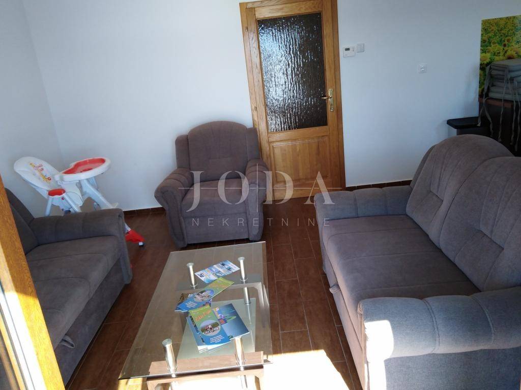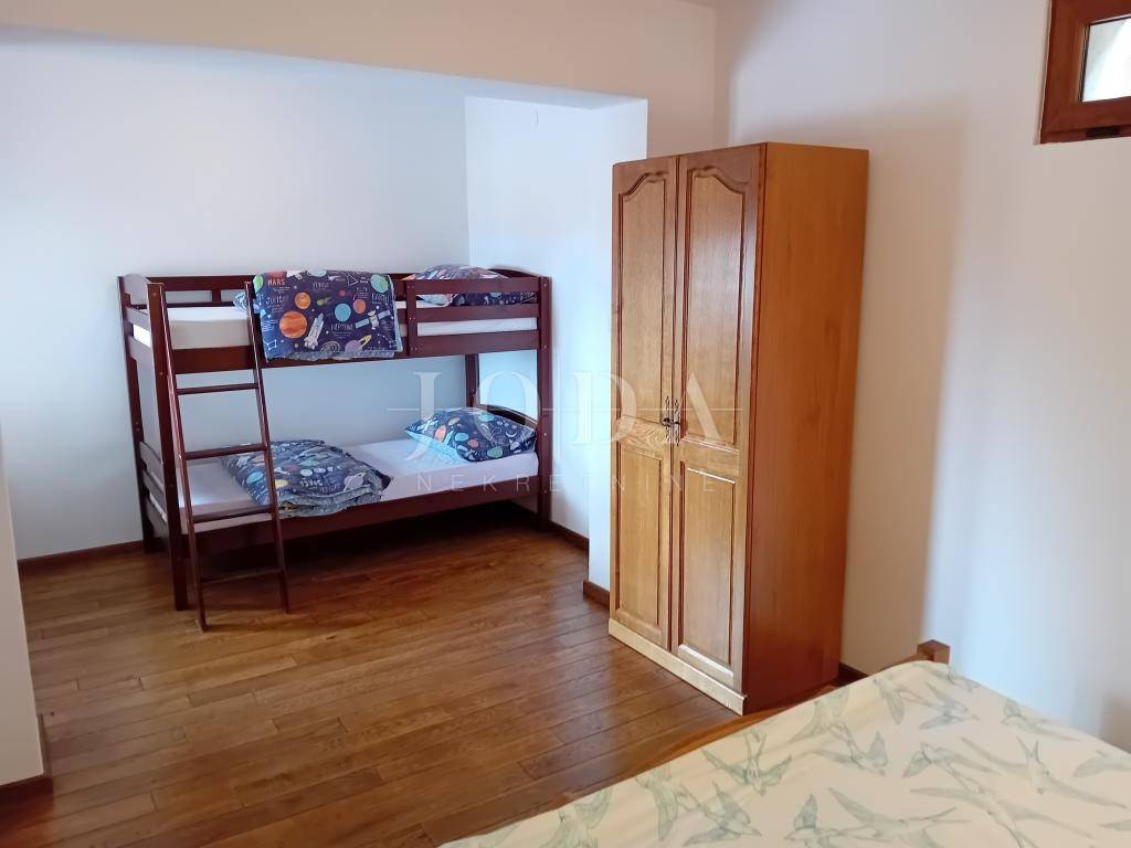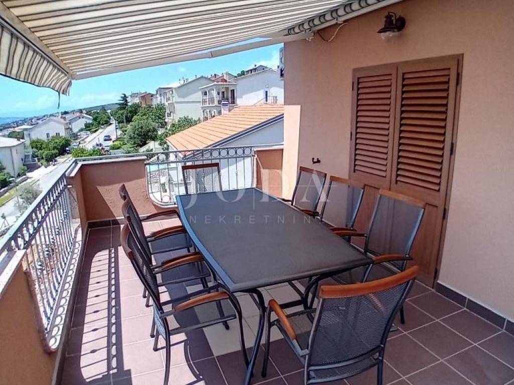 On the ground floor there is an apartment and a flat. The apartment consists of a kitchen, living room, bedroom, bathroom and terrace. The flat consists of a living room, kitchen, two bathrooms, three bedrooms, utility room, hallway and terrace. On the first floor there is an apartment consisting of a kitchen, living room, three bedrooms, two bathrooms, hallway, utility room and a balcony with a beautiful view. On the second floor there is an apartment consisting of a kitchen, living room, three bedrooms, hallway and terrace with a beautiful view of the sea and the island of Krk.